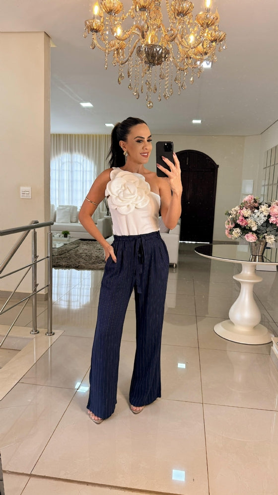A Calça Maili é a combinação perfeita de elegância e conforto. Com modelagem pantalona e um charmoso detalhe de amarração na cintura, ela oferece um caimento impecável. Essa peça é um verdadeiro sonho, ideal para compor looks sofisticados e modernos.