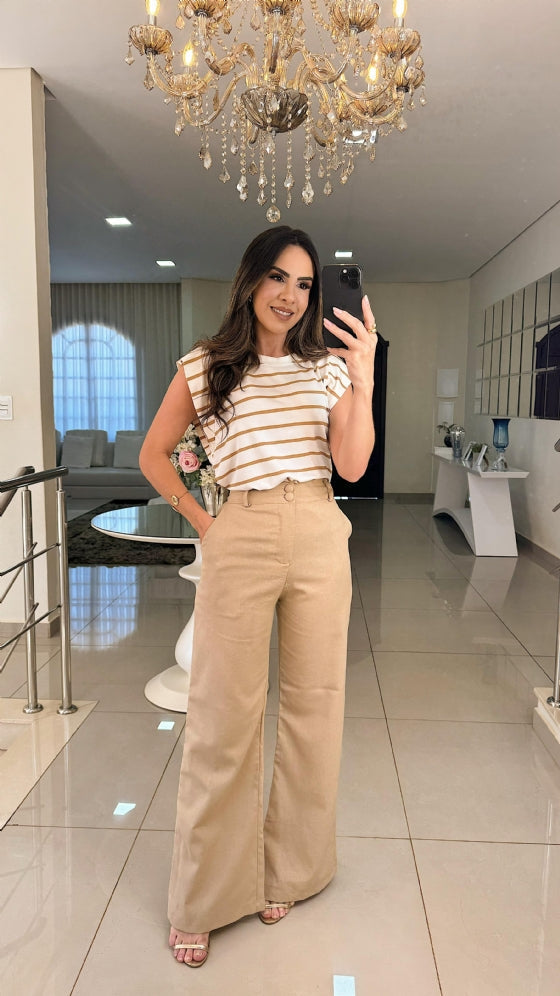 A Calça Selene é a combinação ideal de conforto e sofisticação. Confeccionada em tecido de linho, ela traz um toque de elegância para qualquer look. O lastex na parte de trás proporciona um ajuste perfeito, garantindo que a peça vista extremamente bem.